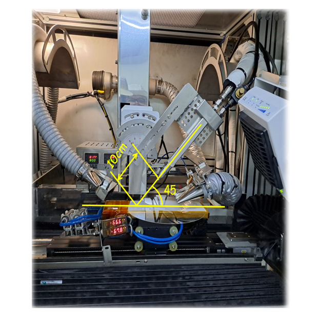 光学部品、半導体関連製品の表面洗浄工程に最適 CO2 Snow Cleaning有機化合物洗浄 例:Wafer Glass Recipe Nozzle Type : pen type 0.3mm Nozzle Angle : 45 ° Nozzle Distance : 10cm Moving Speed : 100mm/s Cycle Time : 15S/PCS